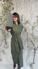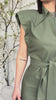 This shirt/dress is made of lightweight jersey that provides comfort and elegance. It is a midi length model, with emphasized shoulders, a classic collar and a belt at the waist that further shapes the silhouette. It fastens at the front and has a subtle slit at the bottom for a dose of casualness and movement.