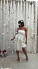 This charming mini dress combines a feminine silhouette with casual elegance. The top of the dress is slim-cut, slightly fitted to the body, which beautifully emphasizes the waistline and neckline. The bottom part flares downwards into an A-line, creating a playful, light fall that gives the dress mobility and a youthful look. This model also comes with a bow belt and serves as a decorative detail that emphasizes the waist.